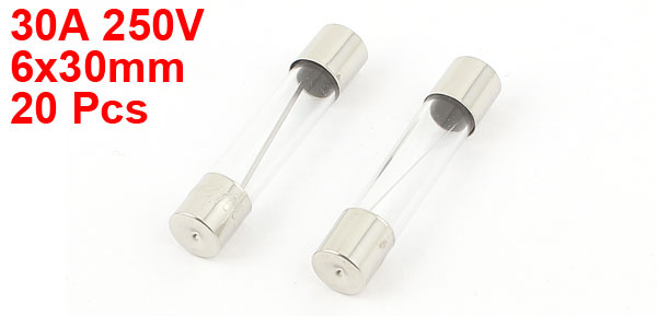 Details20 x Low Breaking Capacity 6x30mm Fast Blow Cylindrical Glass Tube Fuse 30A 250V  Product Name Quick Blow Glass Tube Fuses Features Fast Blow(F) Low Breaking Capacity(L) Rated Current 250V Rated Current 30A Body Size 6 x 30mm/ 0.24" x 1.2"(D*L) Material Glass, Metal Color Silver Tone, Clear Weight 23g Package 20 x Quick Blow Glass Tube Fuses