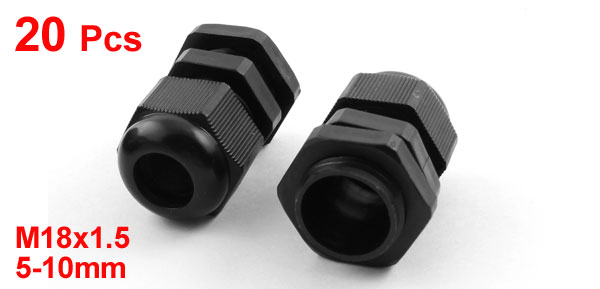 Product Name Cable Gland Model M18 Thread Size M18x1.5 Cable Range 5-10mm Thread Length 7mm / 0.27" Total Size 35 x 26mm / 1.3" x 1" (L*Max.D) Main Material Plastic Color Black Weight 152g Package Content 20Pcs x Cable Glands - Reviews