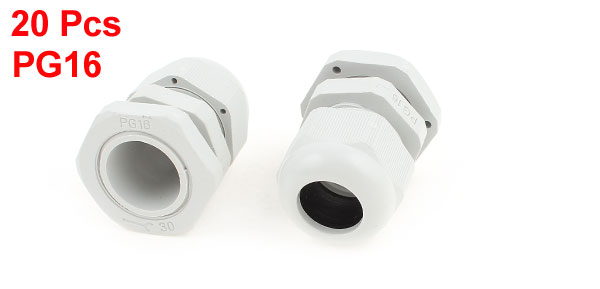 20 x PG16 10~14mm Dia Cable Wire Waterproof Connector Gland White