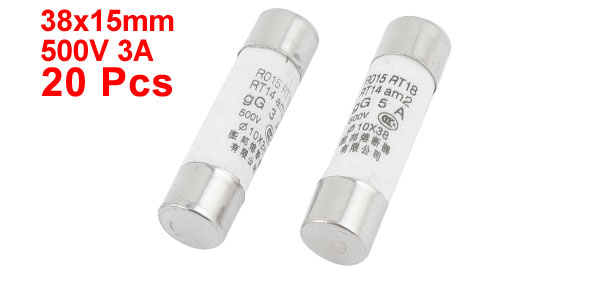 Product Name Ceramic Fuse Model RT14 RT18 R015 Rated Voltage AC 500V Rated Current 3A Dimension 10 x 38mm/ 0.39" x 1.45" (D*L) Material Metal, Ceramic, Electronic Parts Main Color Silver Tone Net Weight 142g Package Content 20 x Ceramic Fuses - Reviews