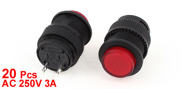 20 x SPST Momentary Red Push Button Power Switch R16-503B AC 250V 3A