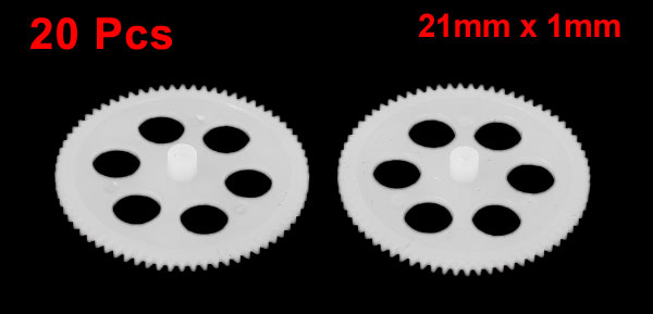 Product Name Plastic Gear Total Size 21 x 1mm/ 0.83" x 0.04" Material Plastic Color White Net Weight 9g Package Content 20 x Plastic Gear - Reviews