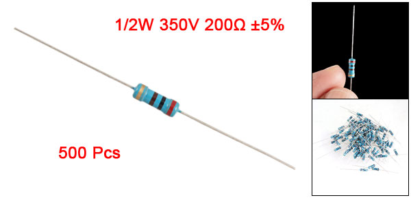 Product Name Carbon Film Resistor Lead Type Axial Power Rating 1/2W Resistance Tolerance ± 5% Resistance Value 200 Ohm Withstand Voltage 350V Size (Not Include Leads) 0.3 x 0.85cm / 0.12" x 0.33" (D*L) Leads Dia (Approx.) 0.03cm / 0.012" Total Length (Approx.) 5.6cm / 2.2" Color As Picture Show Weight 124g Package Content 500 Pcs (± 2%) x Carbon Film Resistors - Reviews