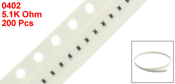 200 Pcs 0402 1mm x 0.5mm 5.1K Ohm 5% Tolerance SMT Chip Resistors