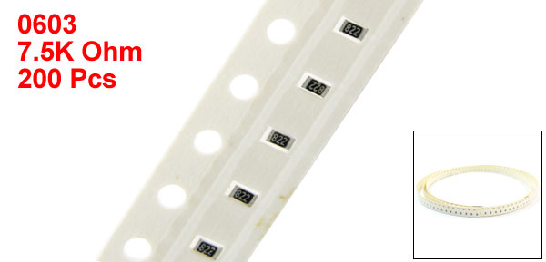 200 Pcs 0603 1608 7.5K Ohm Resistance 1/16W 5% SMT SMD Chip Resistors Strip