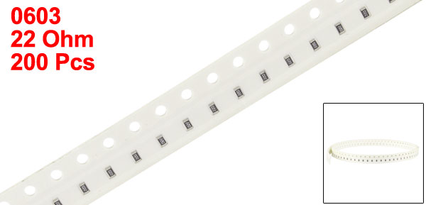 Product Name Chip Resistor Size Code 0603 1608 Size 1.6 x 0.8mm / 0.06" x 0.03"(L*W) Lead Style Surface Mount (SMD - SMT) Resistance Value 22 Ohm Power 1/10 W Tolerance ±1% Main Color White Net Weight 5g Package Content 200(±2%) Pcs x Chip Resistors - Reviews