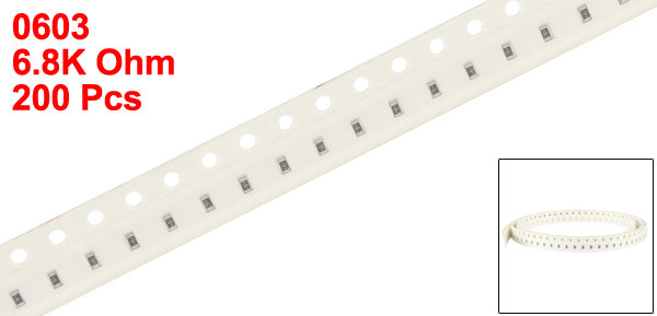 Product Name Chip Resistor Size Code 0603 1608 Size 1.6 x 0.8mm / 0.06" x 0.03"(L*W) Lead Style Surface Mount (SMD - SMT) Resistance Value 6.8K Ohm Power 1/10 W Tolerance ±1% Main Color White Net Weight 5g Package Content 200(±2%) Pcs x Chip Resistors - Reviews