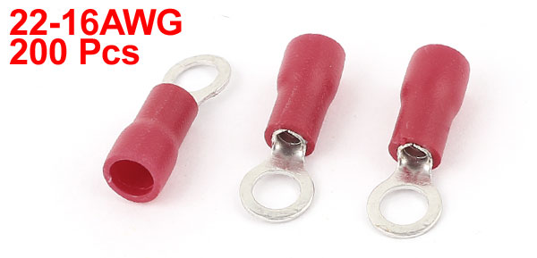 200 Pcs 1.25-4S Insulated Wire Connector Ring Crimp Terminal Red 22-16AWG