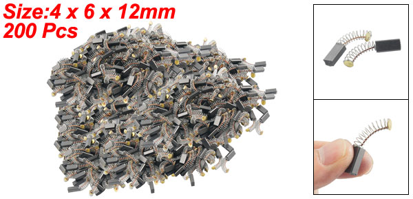 Product Name Carbon Brush Carbon Brush Size 4 x 6 x 12mm/ 1/8" x 7/32" x 15/32" (L*W*T) Total Length (Approx) 30mm/ 1.2" Material Carbon & Metal Color Black, Silver Tone, Brass Tone Net Weight 135g Package Content 200(±2%) x Carbon Brushes - Reviews