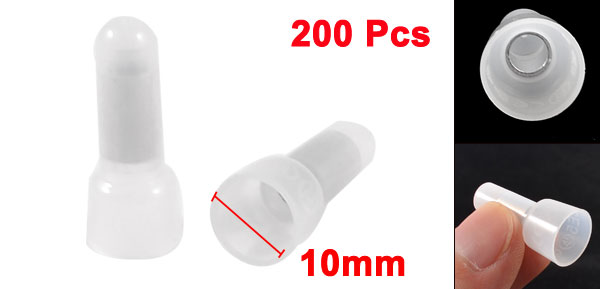 Product Name Closed End Wire Connector Model CE5 Tin-plated Tube Inner Dia 5mm/ 0.2" Tin-plated Tube Length 8mm/ 0.30" Inner Dia 10mm/ 0.39" Total Size (Each) 11 x 25mm/ 0.45" x 1" (D*L) Color White Material Nylon, Metal Weight 113g Package 200(+/-2%) x Closed End Wire Connector - Reviews