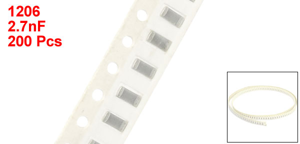 Product Name SMD Capacitor Size Code 1206 3216 Size 3 x 1.6mm / 0.12" x 0.06" (L*W) Lead Style Surface Mount (SMD - SMT) Capacity Value 272pF Tolerance ±5% Voltage 50V Main Color White Net Weight 10g Package Content 200(±2%) Pcs x SMD Capacitors - Reviews
