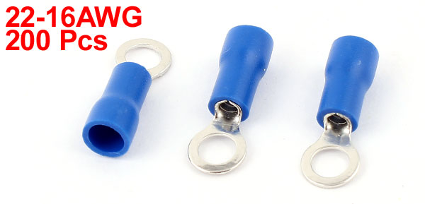 200 Pcs 1.25-4S Insulated Wire Connector Ring Crimp Terminal Blue 22-16AWG