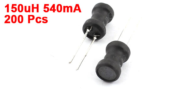 Product Name Radial Lead Inductor Inductance 150uH Rating Current 540mA Tolerance 10% Body Size 6 x 10mm / 0.24" x 0.4"(D*H) Pin Size 0.6 x 15mm/ 0.24" x 0.6"(D*L) Lead Distance 2mm / 0.08" Color Black, Silver Tone Weight 220g Package Content 200Pcs(±2%) x Radial Lead Inductor - Reviews