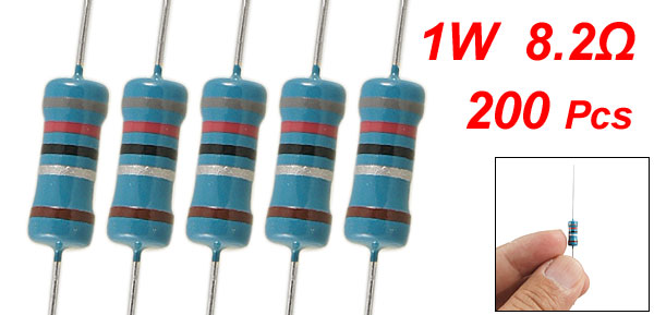 Product Name Metal Film Resistor Quantity 200±2% Pcs Rated Power 1W Tolerance ± 1% Resistance Value 8.2Ω T.C.R(Temperature Coefficient) ±50ppm/°C Body Size 4 x 11mm/ 0.16" x 0.43" (D*L) Leads Dia (Approx.) 0.5mm/ 0.02" Total Length (Approx.) 60mm/ 2.4" Color As Picture Shown Net Weight 109g Package Content 200 Pcs x Metal Film Resistors - Reviews