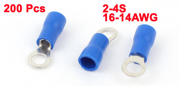 200 Pcs 2-4S Insulated Wire Connector Ring Crimp Terminal Blue 16-14AWG