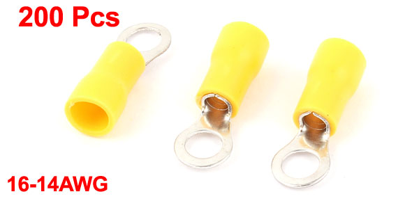 200 Pcs 2-4S Insulated Wire Connector Ring Crimp Terminal Yellow 16-14AWG