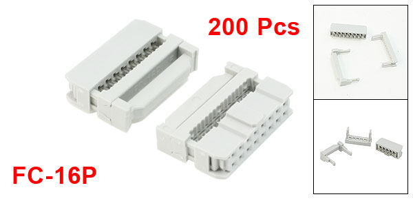 200 Pcs 2 Rows 16 Pin IDC Socket Connector Male Header 2.2mm FC-16P Light Gray