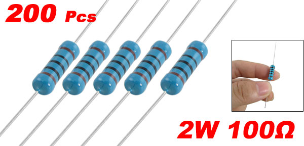200 Pcs 2 Watt 1% 100 Ohm Axial Through Hole Metal Film Resistors