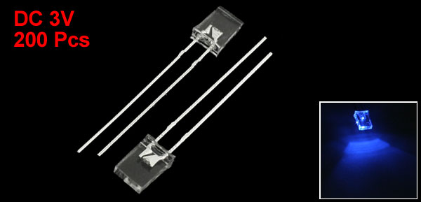 200 Pcs 2 x 5 x 7mm Rectangle Head Blue LED Light Emitting Diodes DC 3V
