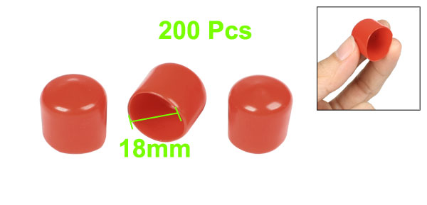 200 Pcs 20mm Height 18mm Inner Dia Round Tip Red PVC Insulated End Caps