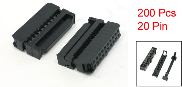 200 Pcs 2.54mm Pitch Female 20 Pin Flat Cable IDC Socket Connector Black