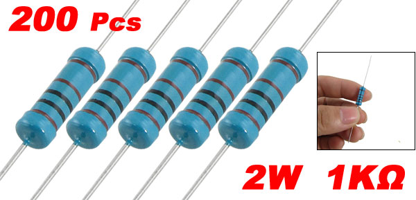 200 Pcs 2W 1K Ohm 1% Axial DIP RJ Metal Film Resistors