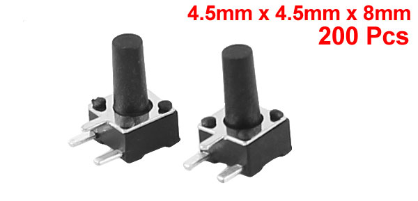 200 Pcs 4.5mmx4.5mmx8mm 3 Pins PCB Momentary Tactile Tact Push Button Switch