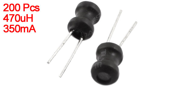 Product Name Radial Inductor Inductance 470uH Rating Current 350mA Tolerance 10% Body Size 6 x 8mm / 0.24" x 0.31"(D*H) Pin Size 0.55 x 14mm/ 0.22" x 0.55"(D*L) Lead Distance 2mm / 0.08" Color Black, Silver Tone Weight 174g Package Content 200Pcs(±2%) x Radial Inductor - Reviews