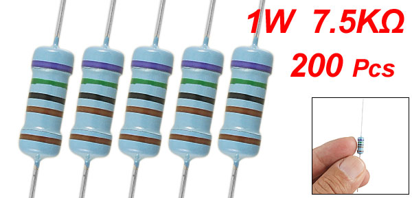 200 Pcs 7.5K Ohm 7K5 1% 1W Axial Metal Film Resistors