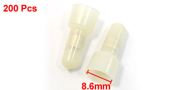 Product Name Closed End Wire Connector Model CH5 Tin-plated Tube Inner Dia 4mm/ 0.16" Tin-plated Tube Length 12.3mm/ 0.48" Inner Dia 8.6mm/ 0.34" Total Size (Each) 9.6 x 21.3mm/ 0.38" x 0.84" (D*L) Color Beige Material Plastic, Metal Weight 85g Package 200(± 2%) x Closed End Wire Connector - Reviews