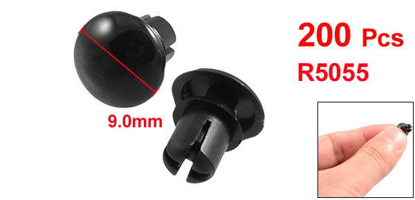 200 Pcs Black Nylon 5.0mm Bottom Dia Push Clips Rivets Fasteners R5055