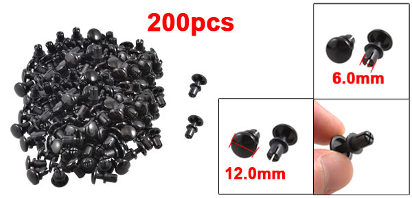 200 Pcs Black Nylon 6.0mm Bottom Dia Push Clips Rivets Fasteners R6080