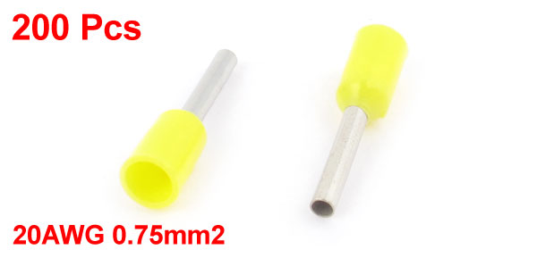 200 Pcs Cord End Terminal Insulated Bootlace Ferrule Yellow E7508 20AWG 0.75mm2