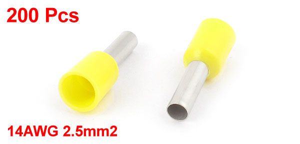 200 Pcs Crimp Cord End Terminal Insulated Ferrule Tube Yellow E2508 14AWG 2.5mm2