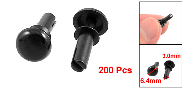 Product Name Push Rivet Part No. R3080 Head Dia.(Approx.) 6.4mm/ 0.25" Head Thickness(Approx.) 1.6mm/ 0.063" Bottom Dia.(Approx.) 3.0mm/ 0.118" Push In Height(Approx.) 8.0mm/ 0.35" Total Height(Approx,) 12mm/ 0.47" Fit for Panel Thickness 5.5-6.5mm Material Nylon Color Black Net Weight 23g Package Content 200±2% Pcs x Push Rivet - Reviews