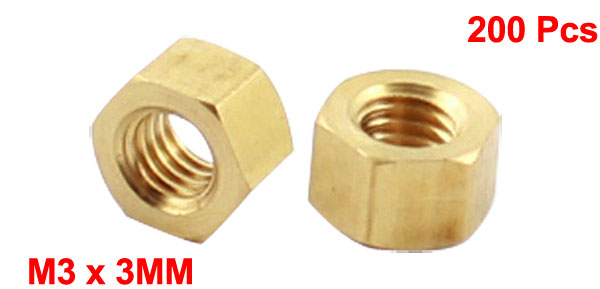 200 Pcs M3 x 3mm M3 Female Thread Brass Pillar Standoff Hexagonal Nut Spacer