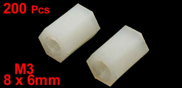 200 Pcs M3 x 8mm Plastic Insulation Hex Hexagonal Threaded Spacer