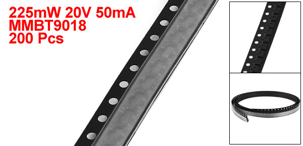 Product Name SMD Transistor Model MMBT9018 Capsulation / Package SOT-23 Pin Number 3 Pin Collector-Emitter Voltage Vceo 15V Collector-Base Voltage Vcbo 20V Collector Current -Continuous Ic 50mA Collector Power Dissipation Pc 225mW Color Black Weight 5g Package Content 200 in 1 x SMD Transistor - Reviews