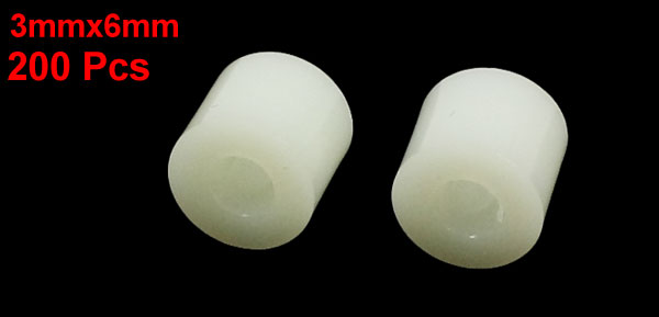 Product Name LED Spacers Quantity 200±2% Inner Hole Dia.(Approx.) 3mm Outer Dia 7mm Total Size(Approx.) 7 x 6mm/ 0.27" x 0.24" (D*T) Material Nylon Color White Net Weight 39g Package Content 200±2% x LED Spacers - Reviews