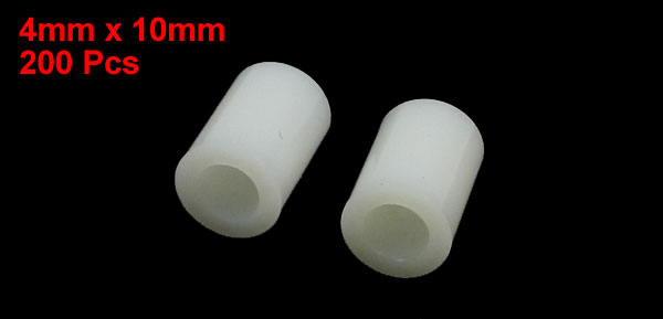 Product Name LED Spacers Quantity 200±2% Inner Hole Dia.(Approx.) 4mm Outer Dia 7mm Total Size(Approx.) 7 x 10mm/ 0.27" x 0.39" (D*T) Material Nylon Color White Net Weight 53g Package Content 200±2% x LED Spacers - Reviews