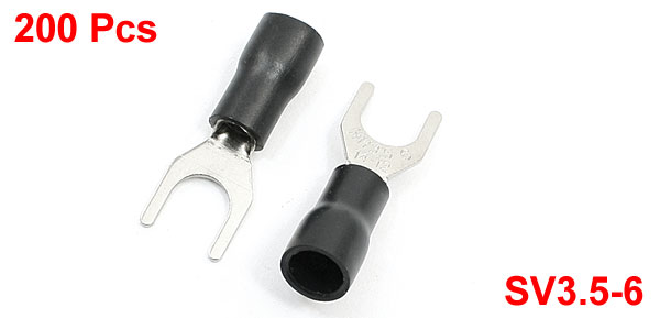 Product Name Pre Insulated Fork Terminal Model SV3.5-6 Design Fork Type Material PVC Plastic, Metal Color Silver Tone, Black Fit Cable Size 2.5 - 4mm² (A.W.G 14-12) Tip Inner Width 6.5mm / 0.26" Fit Amerinan Bolt 1/4" Tip Outer Width 8mm / 0.31" Tube Inner Diameter 6.2mm / 0.24" Total Length 24.8mm / 0.98" Max. Current 37A Weight 181g Package Content 200(±2%) x Pre Insulated Fork Terminal - Reviews