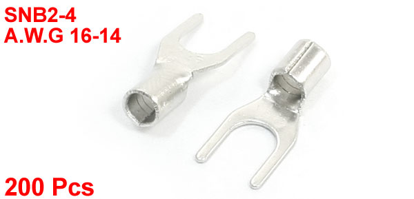 200 Pcs SNB2-4 AWG 16-14 Wire Connector Non Insulated Fork Terminals