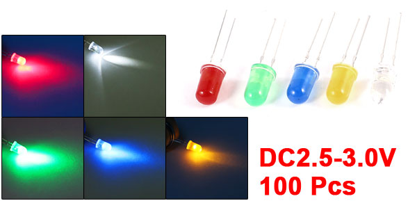 Product Name Light Emitting Diode Material Metal, Plastic Emitting Light Color Red,Green,Yellow,White,Blue Voltage DC2.5-3.0V Head Size(Approx) 5 x 5mm/ 0.2" x 0.2"(L*D) Pin Size (Approx.) 0.47 x 18mm / 0.018" x 0.7" (D * Max.L)