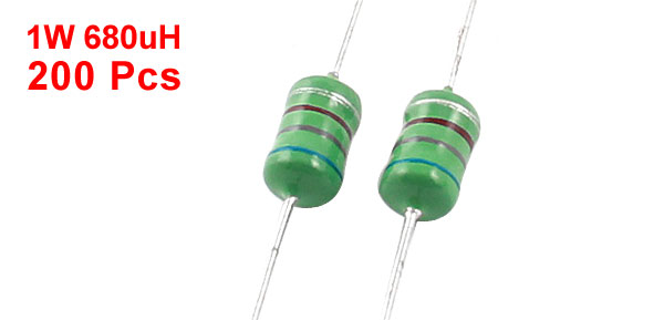 Product Name Color Ring Inductor Inductance Tolerance ±10%(K) Inductance 680uH Power 1W Material Epoxy Resin, Metal, Inductor Body Size 5mm x 10mm / 0.2" x 0.4"(Max.D*L) Lead Diameter 0.5mm / 0.02" Total Length 6cm / 2.4" Net Weight 100g Package Content 200(±2%) x Color Ring Inductor - Reviews