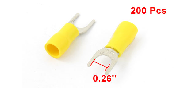 200 Pcs Yellow 6.5mm Bolt Furcate Pre Insulated Fork Terminal AWG12-10