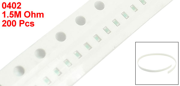 Product Name Chip Resistor Size Code 0402 1005 Size 1 x 0.5mm / 0.04" x 0.02"(L*W) Lead Style Surface Mount (SMD - SMT) Resistance Value 1.5M Ohm Power 1/16 W Tolerance ±1% Main Color White Net Weight 2g Package Content 200(±2%) Pcs x Chip Resistors - Reviews