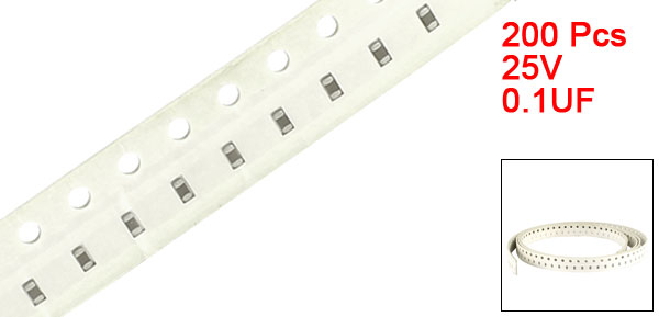 Details200 Pieces 100000PF 0.1UF SMD SMT Thick Film Chip Capacitor 0603 25V 5% White  Product Name Chip Capacitor Packaging Type 0603 Lead Style Surface Mount (SMD - SMT) Capacitance Value 0.1UF/100NF/100000PF Voltage 25V Tolerance ±5% Size 83 x 0.8x0.1cm / 33" x 0.31" x 0.04" (L*W*H) Color White Weight 7g Package Content 200(±2%) Pcs x Chip Capacitor