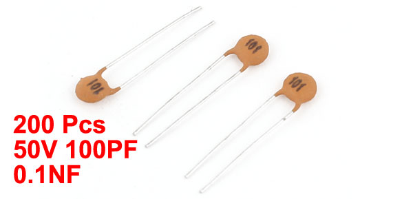 200 Pieces 50V 100PF 0.1NF Capacitance Metal Radial Leads Ceramic Disc Capacitor
