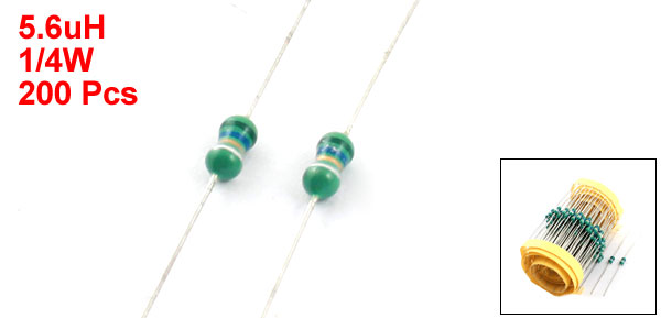 Product Name Color Ring Inductor Inductance Tolerance 10%(K) Inductance 5.6uH Power 1/4W Material Epoxy Resin, Metal, Inductor Body Size 3mm x 7mm / 0.12" x 0.28"(Max.D*L) Lead Diameter 0.45mm Total Length 6cm / 2.4" Net Weight 35g Package Content 200(±2%) x Color Ring Inductor - Reviews