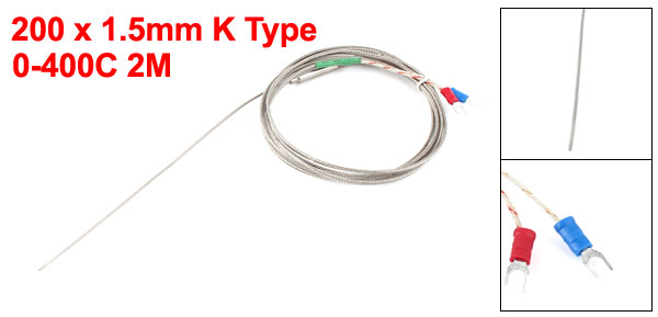 200 x 1.5mm Probe K Type Temperature Thermocouple Sensor 0-400C 2M